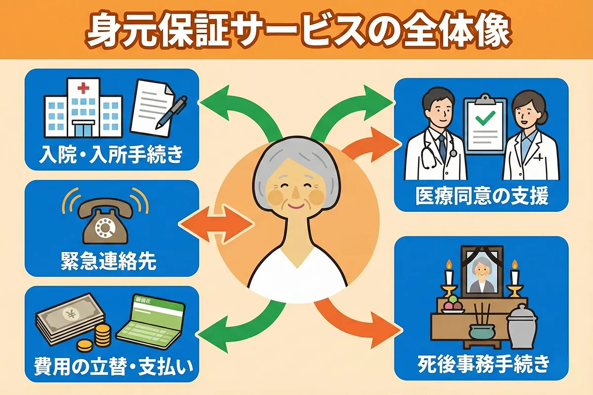 ここには、保証の範囲、費用、連絡先、死後の希望などが明記され、必要に応じて死後事務委任契約や財産管理とセットで結ぶケースもあります。